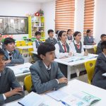 Маҷлисгоҳи мактаб бо Парчами давлатӣ, лавҳаи «Муқаддасоти Тоҷикистон» ва гулдастаҳои идона оро ёфтааст. Суруди миллӣ садо медиҳад ва ҳозирин аз ҷой хеста, ҳамовоз мешаванд.