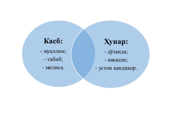 Гурӯҳи 1. Тафовути касб аз ҳунар тавассути диаграммаи Венн: