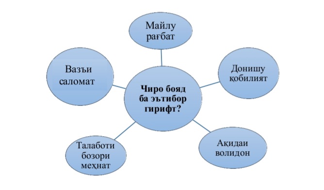 Гурӯҳи 2. Ҳангоми интихоби касбу ҳунар чиро бояд ба эътибор гирифт?