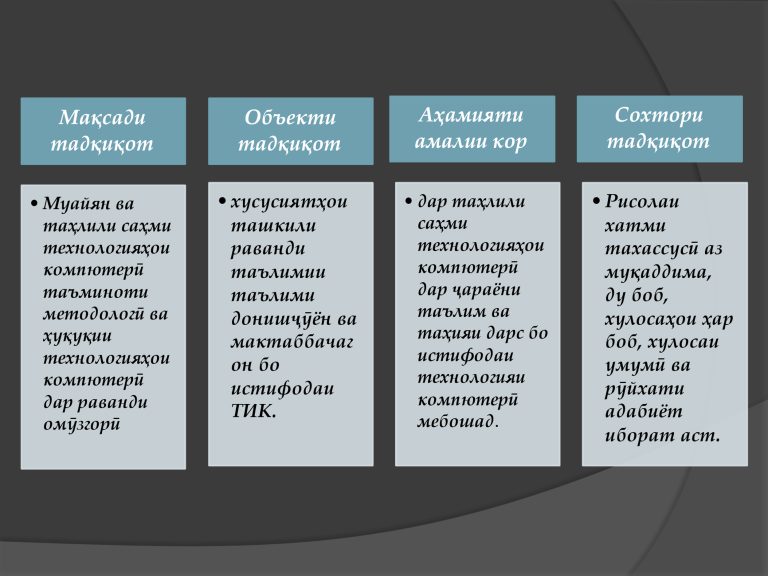 Некрӯз АКБАРОВ, омӯзгори фанни технологияи иттилоотии МТМУ №42-и ноҳияи Мастчоҳи вилояти Суғд Истифодаи технологияҳои...